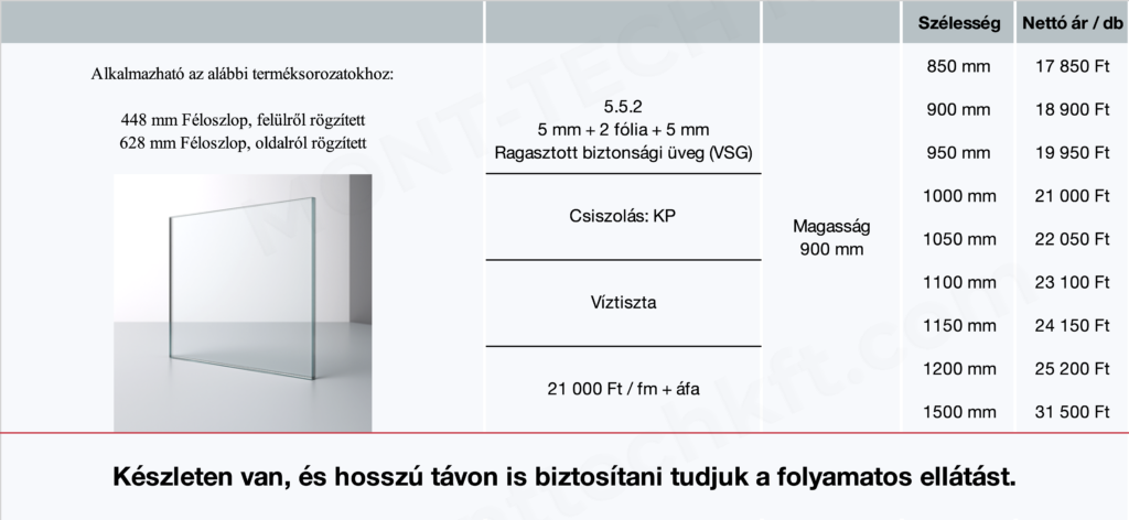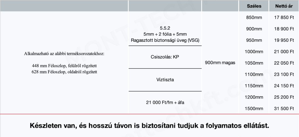 5.5.2 (5+5 mm) ragasztott biztonsági üveg (VSG) 900 mm magas – Víztiszta