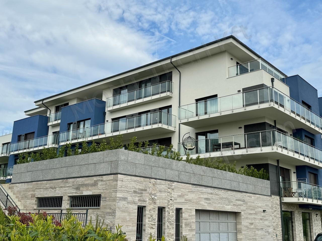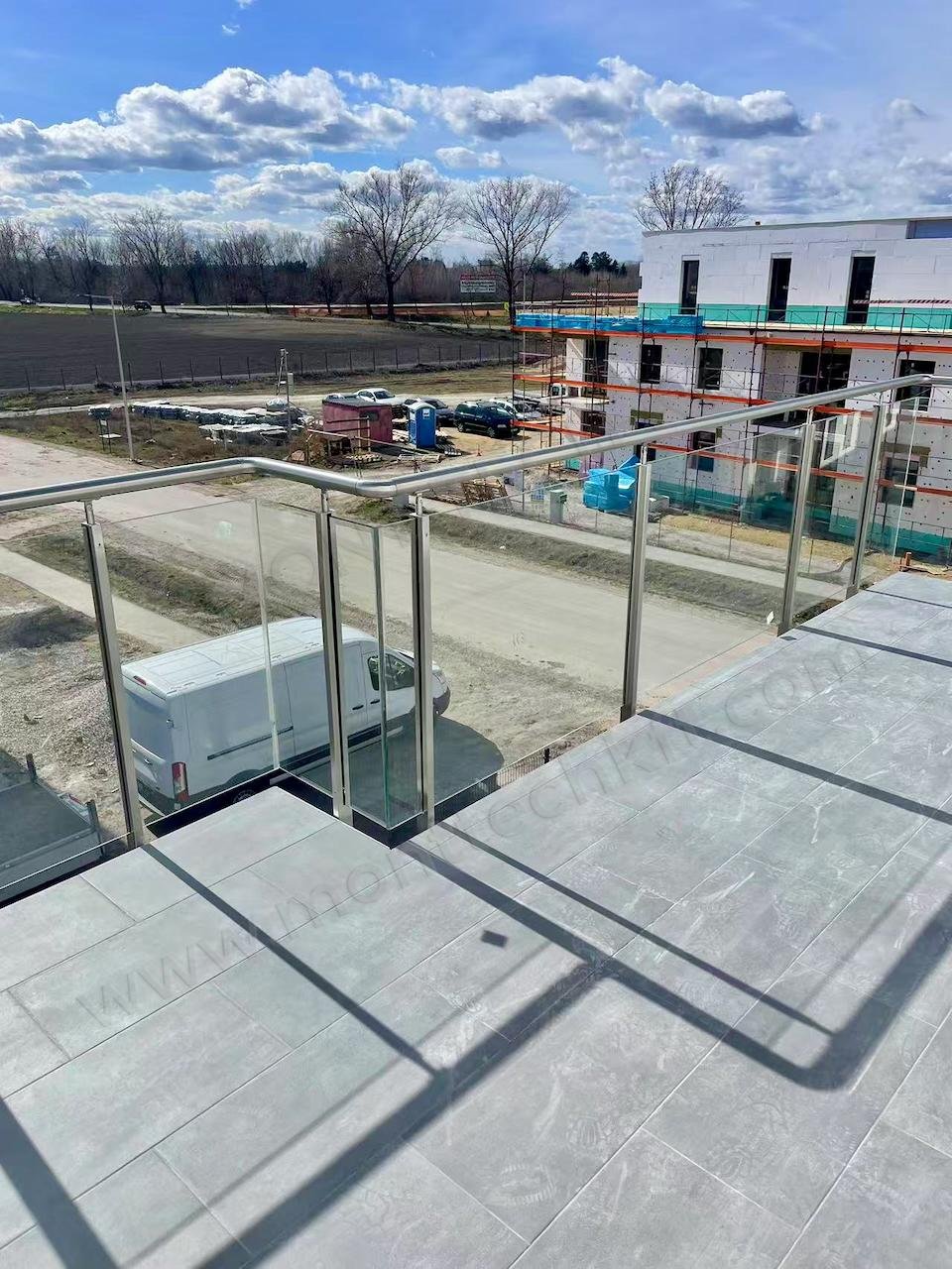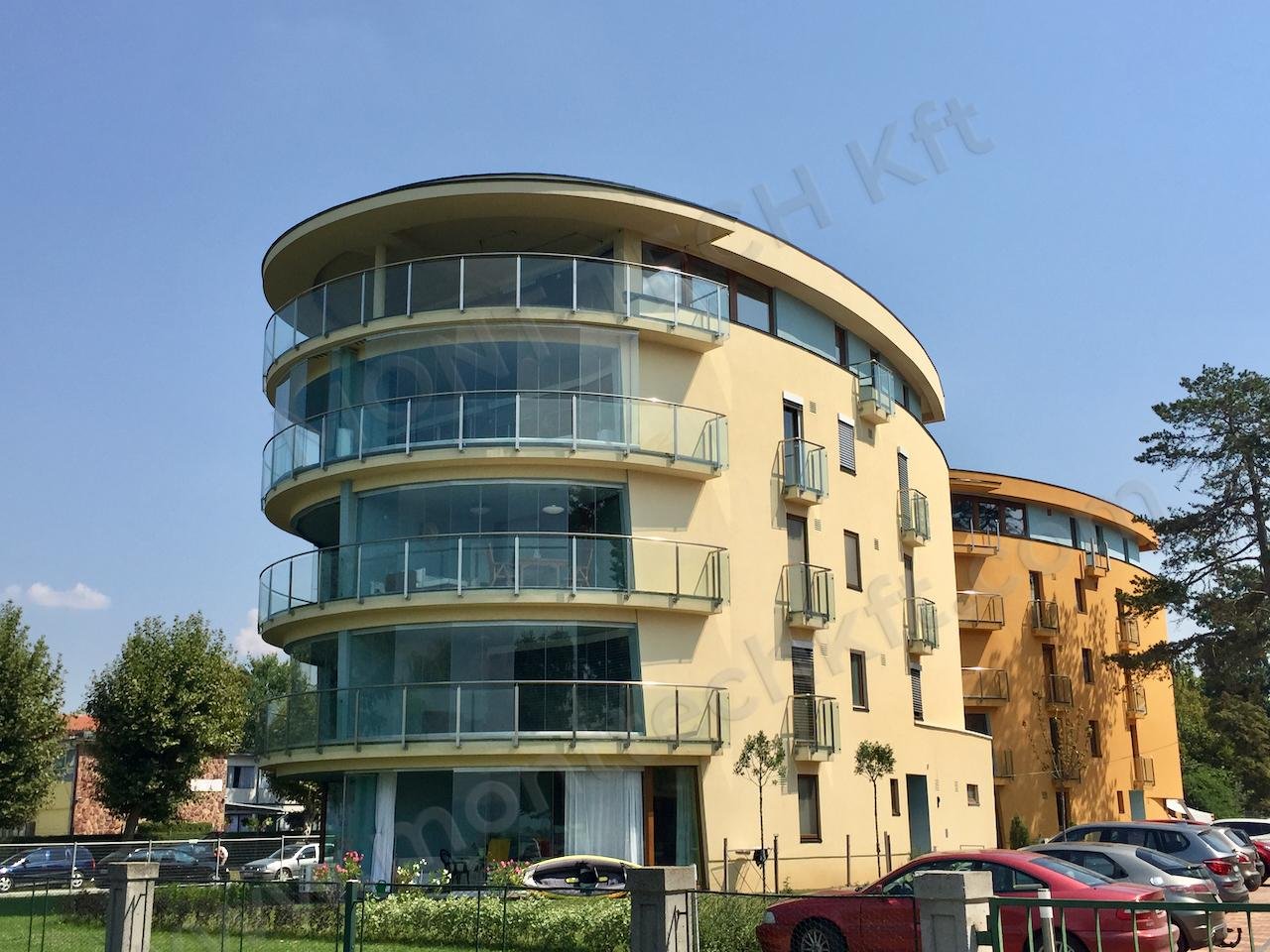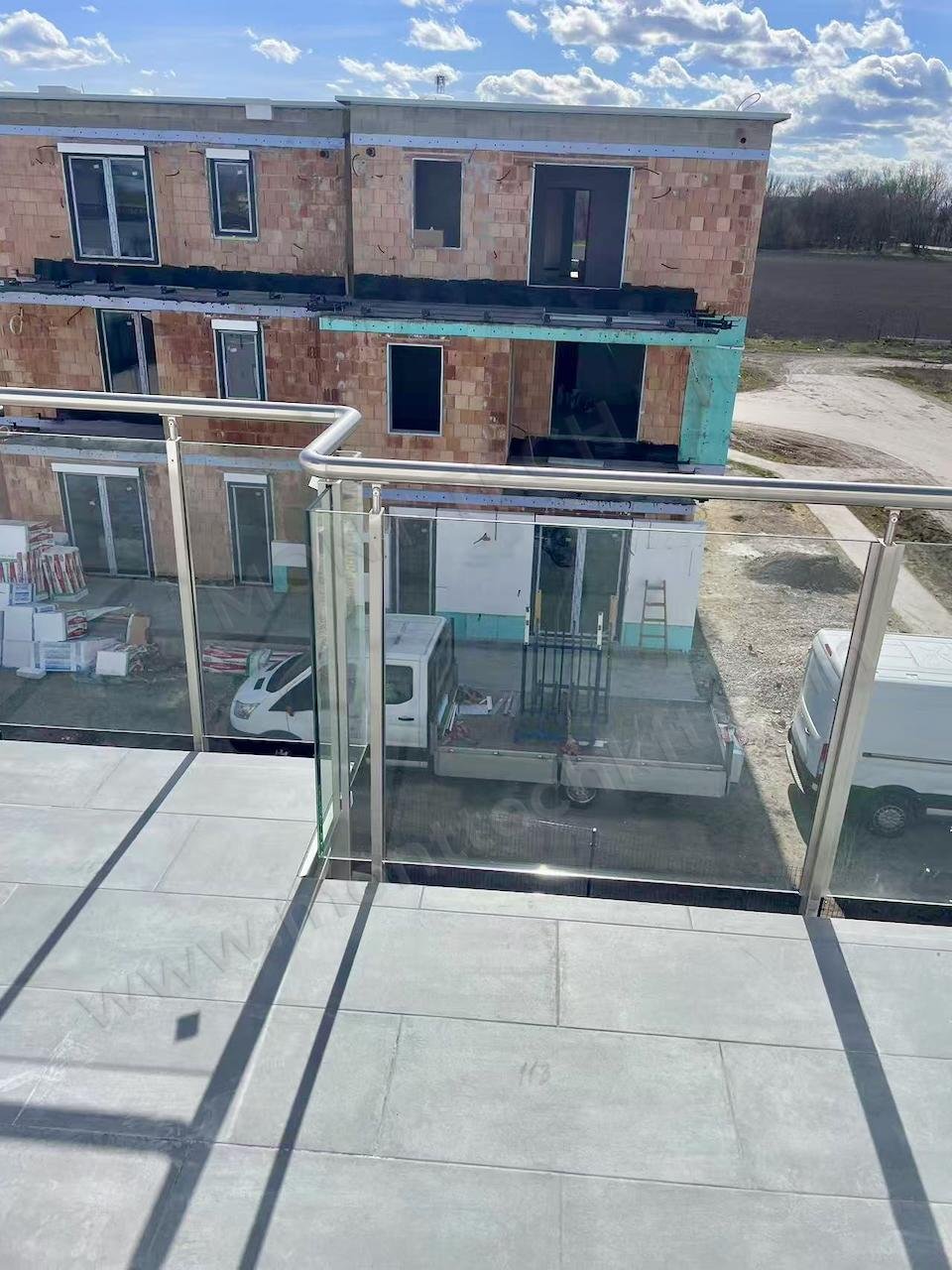 Az oldalt rögzített oszlopos üvegkorlát ideális választás, ha elegáns, mégis erős megoldásra van szükség. A szálcsiszolt rozsdamentes acél tartóelemek diszkréten, az épület síkján kívül helyezkednek el, így az üvegfelület teljes panorámát biztosít.
