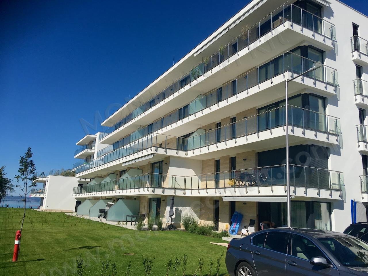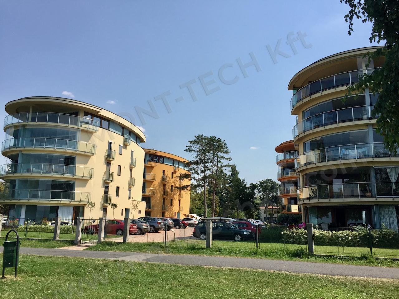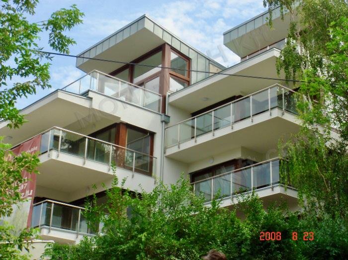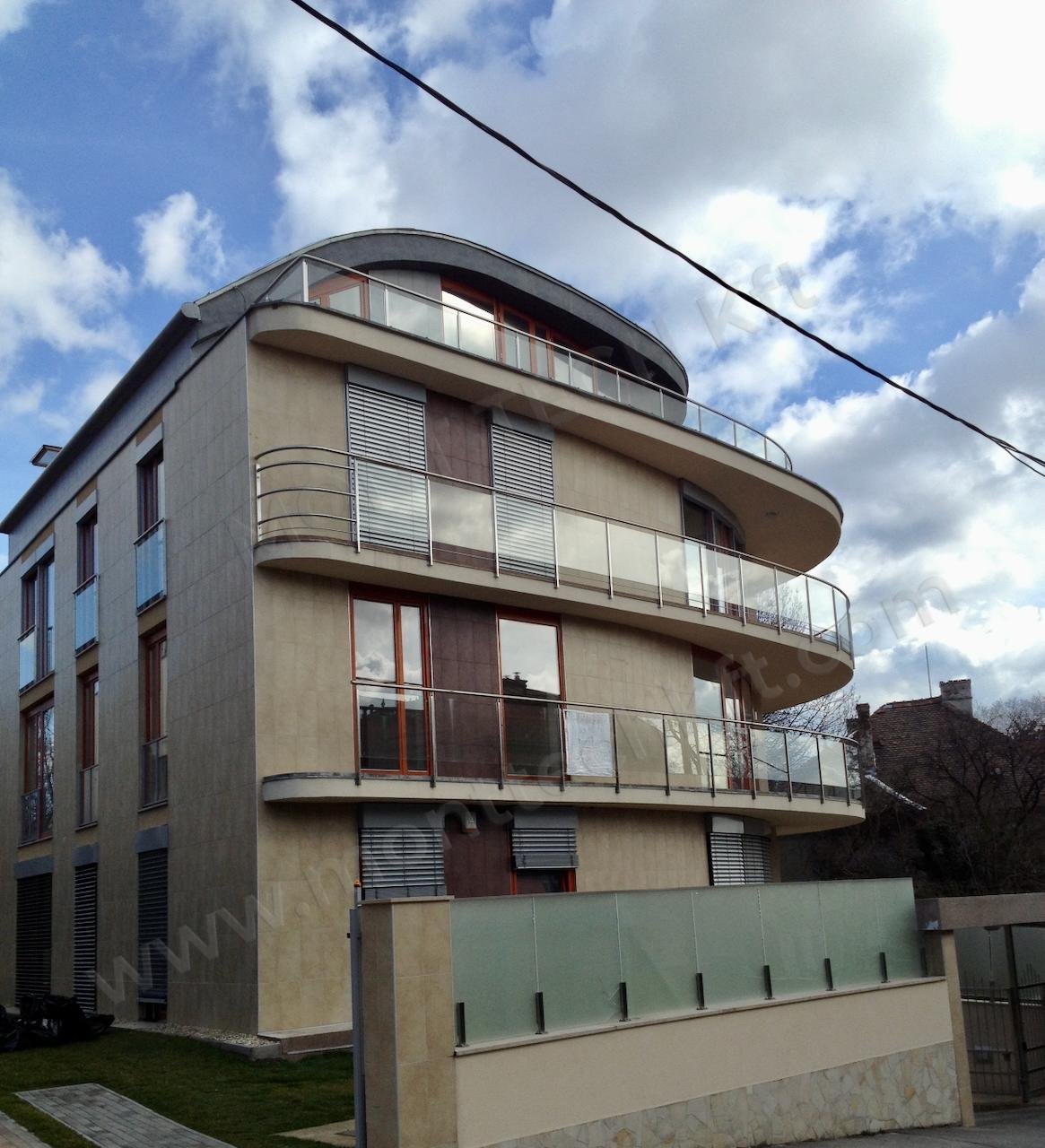 Az oldalt rögzített oszlopos üvegkorlát ideális választás, ha elegáns, mégis erős megoldásra van szükség. A szálcsiszolt rozsdamentes acél tartóelemek diszkréten, az épület síkján kívül helyezkednek el, így az üvegfelület teljes panorámát biztosít.