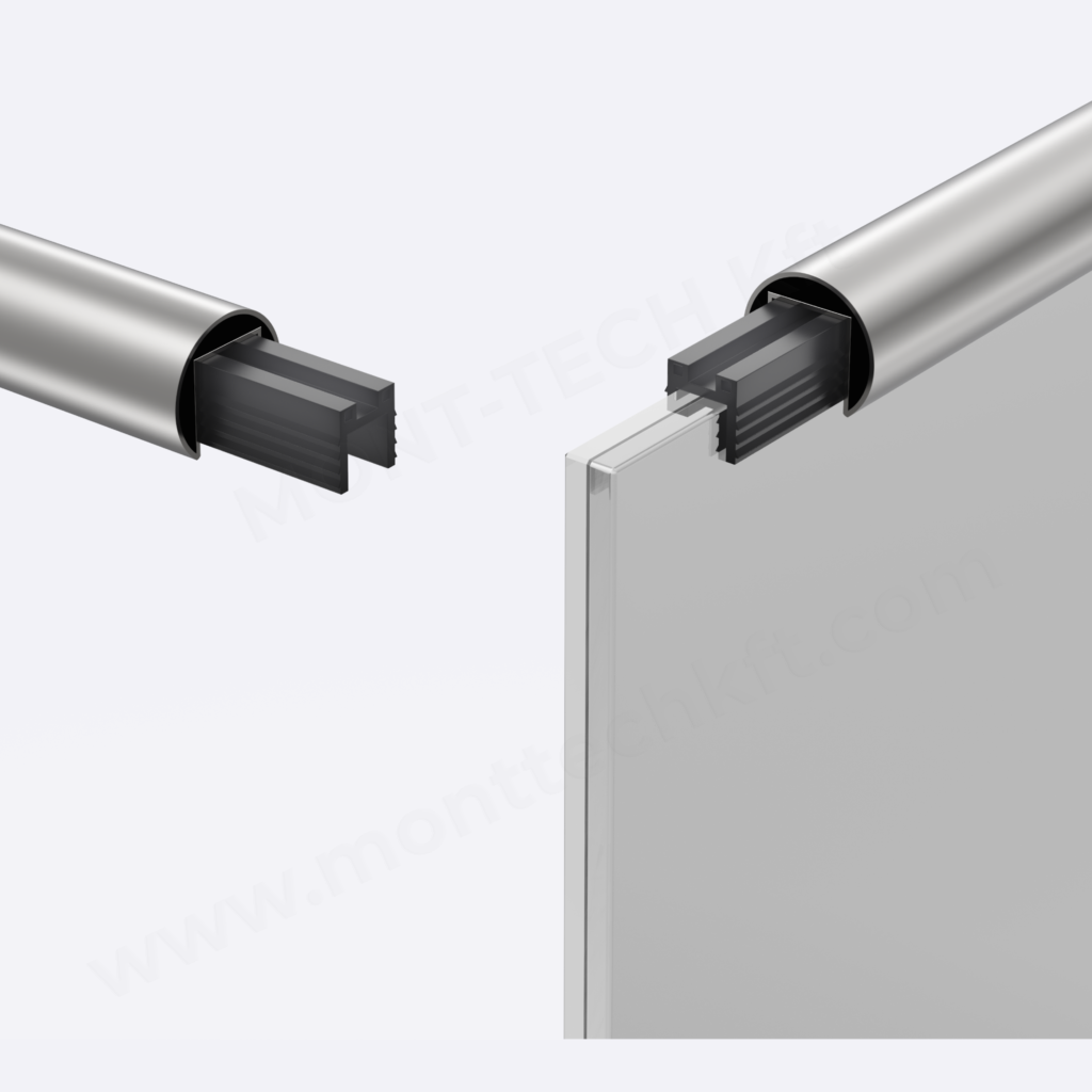 Szerkezet / rögzítési mód: Oldalról rögzített U profil – eloxált alumíniumból, amelyet rozsdamentes acél menetes szárakkal a födém / erkélylemez oldalára rögzítünk, így a járófelület teljes szélessége szabadon használható, az üveg a lehető legközelebb kerül a peremhez. Az üvegtáblák alul, folyamatosan vannak befogva, a csavarok és szerelvények teljesen rejtve maradnak.